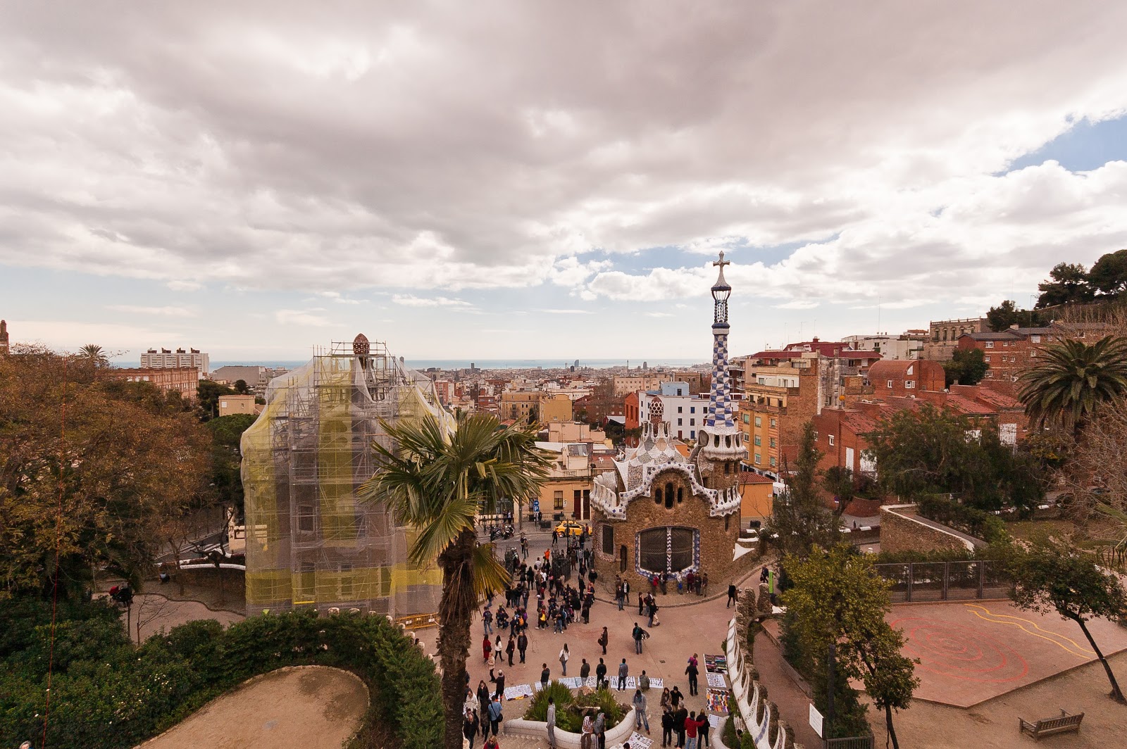 And finally, we were able to spend some time taking in the other major sights of Barcelona. If you ever visit, I would highly recommend taking advantage of a one- or two-day pass on a tour bus; it takes visitors to major sightseeing locales and allows for hopping on and off to take in the city at your own pace. We rode the bus to see Antoni Gaudi's masterpiece Sagrada Familia cathedral (though we didn't bother with the long line and expensive admission to get inside and see the beautiful interior), to marvel at the Modernisma architecture of the Passeig de Gracia, to absorb the beautiful views of the city and the Mediterranean from the mountainside of Montjuic, and to visit and crawl about Gaudi's iconic Park Guell housing project.